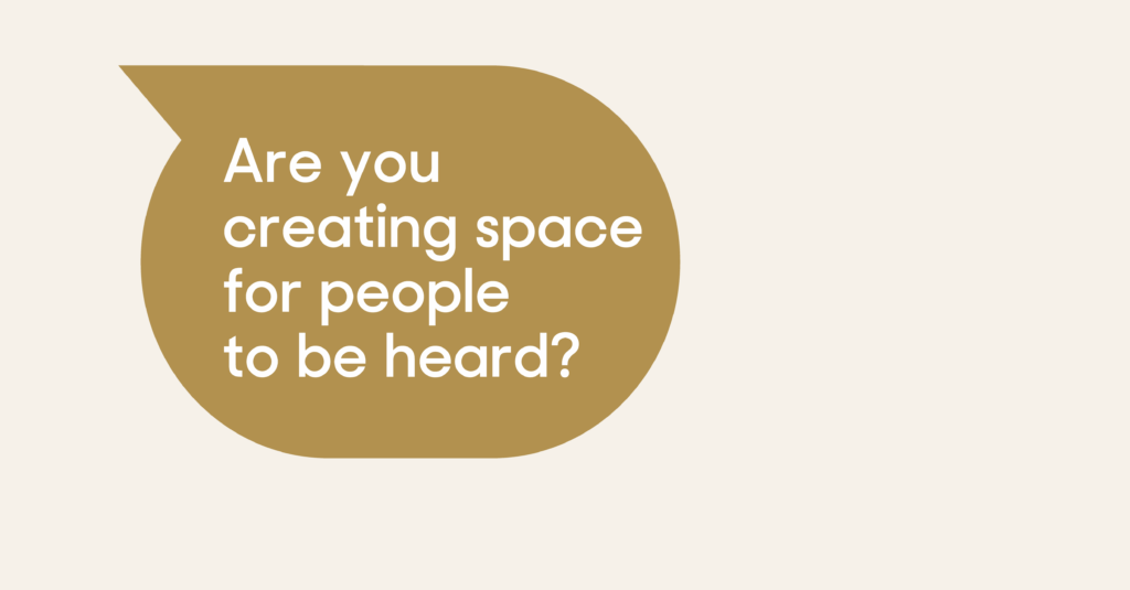 A large part of the takeaway from any conversation is if we feel heard. Provide people with the space and time to listen. Reward people for excellent listening as well as speaking.